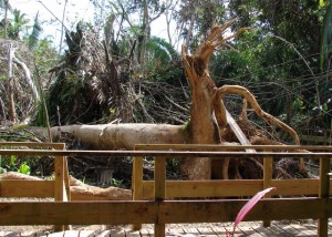 The boardwalks have significant damage everywhere. Railings and walkways need to be redone. Our maintenance supervisor, Tono, said that he couldn’t even see the boardwalk after the hurricane because it was covered in debris.