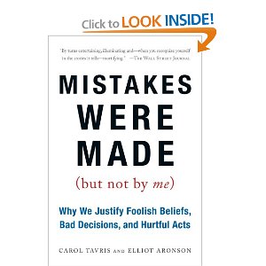 Carol Tavris and Elliot Aronson have written Mistakes Were Made (But Not By Me) to explore that question. With keen scientific minds they dig for the mental and social reasons why we seldom admit to our mistakes. Is it something in our brain that triggers this? Do we really believe what we are saying? Are we just all liars? Are we simply irrational? Or does our memory deceive us in some way?