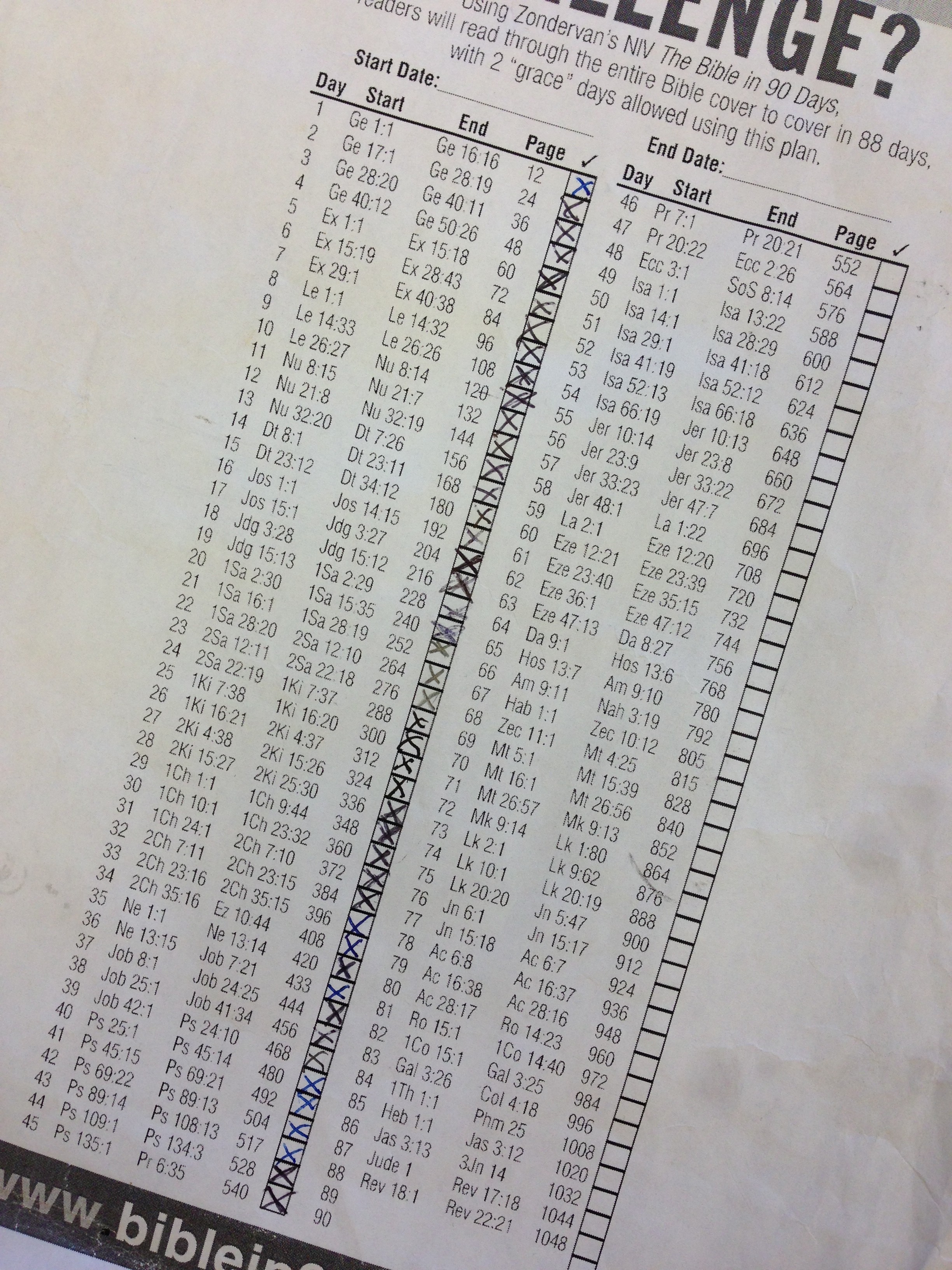 But nothing has taken as much time out of the day as reading through the entire Bible in 90-days. This goal takes time, at least 30-45 minutes a day. And you can’t fall behind or you’ll never catch up. There are no days off with this challenge. I read on days when I work, travel, play, relax, find myself on an airplane, feeling sick, go for long road trips, or am just so busy that reading seems like pure luxury.